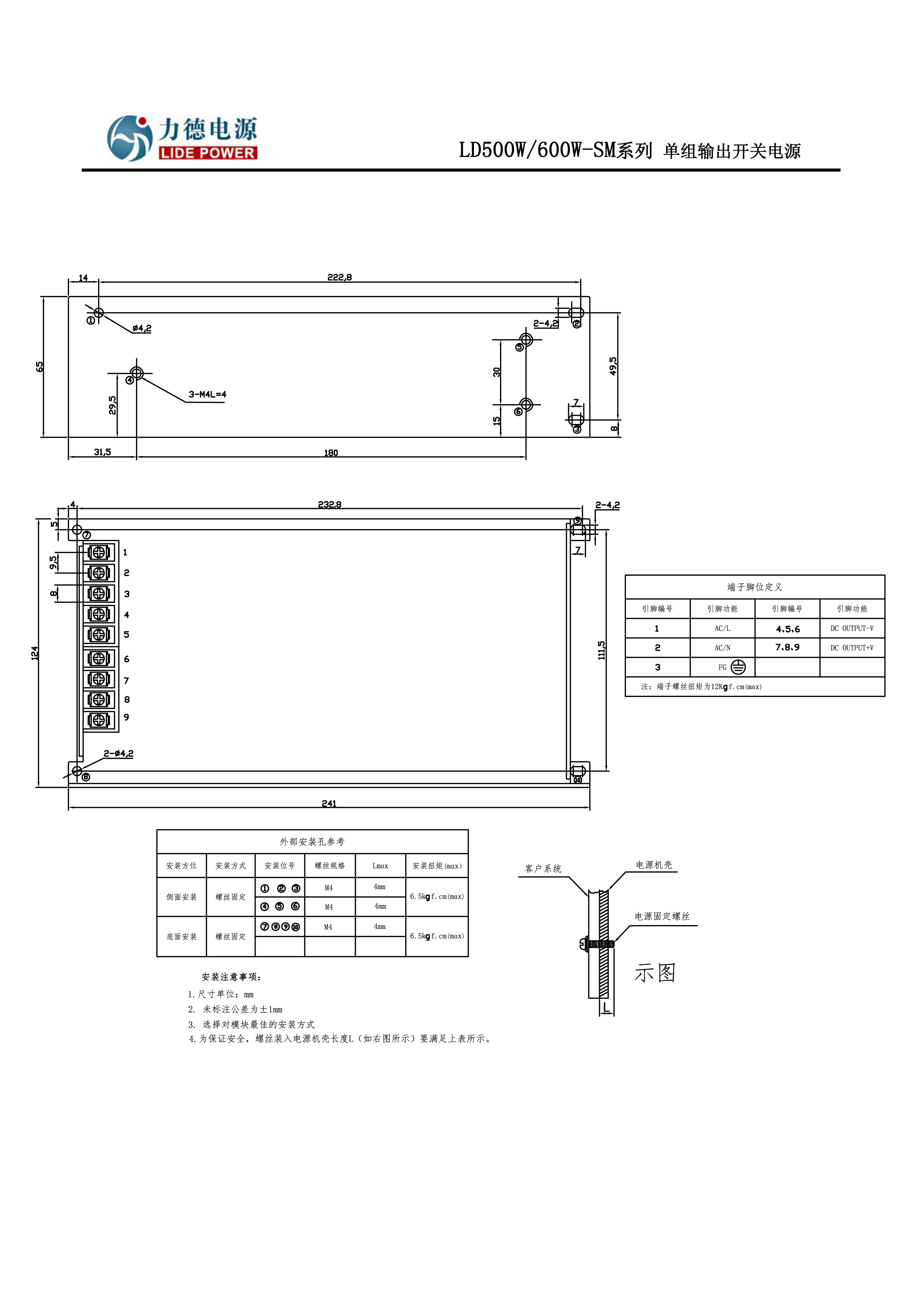 型號: | LD500W/600W-SM | 輸入電壓: | 170-264VAC(210-370VDC) | 濕度: | 20~90%無冷凝 | |